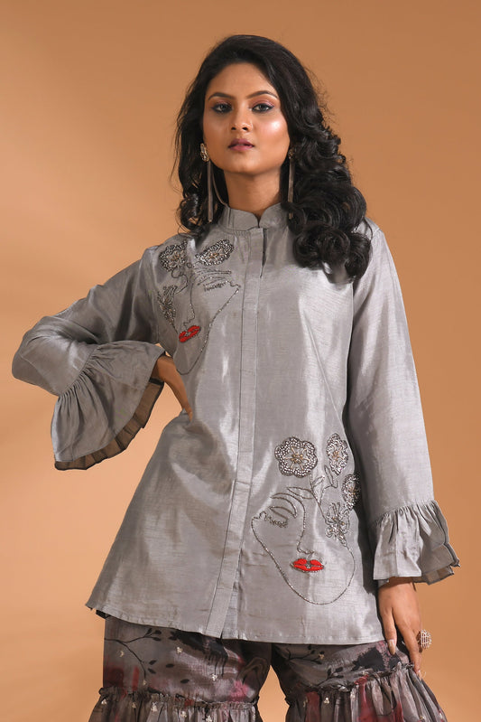 Crop Top With Dupatta With Hand Embroidery
